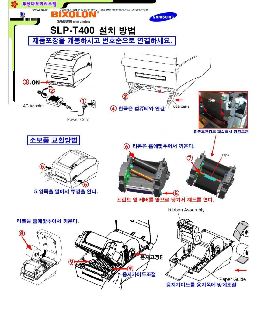 SLP-T400,T403,TX400,TX403 프린터 소모품교환