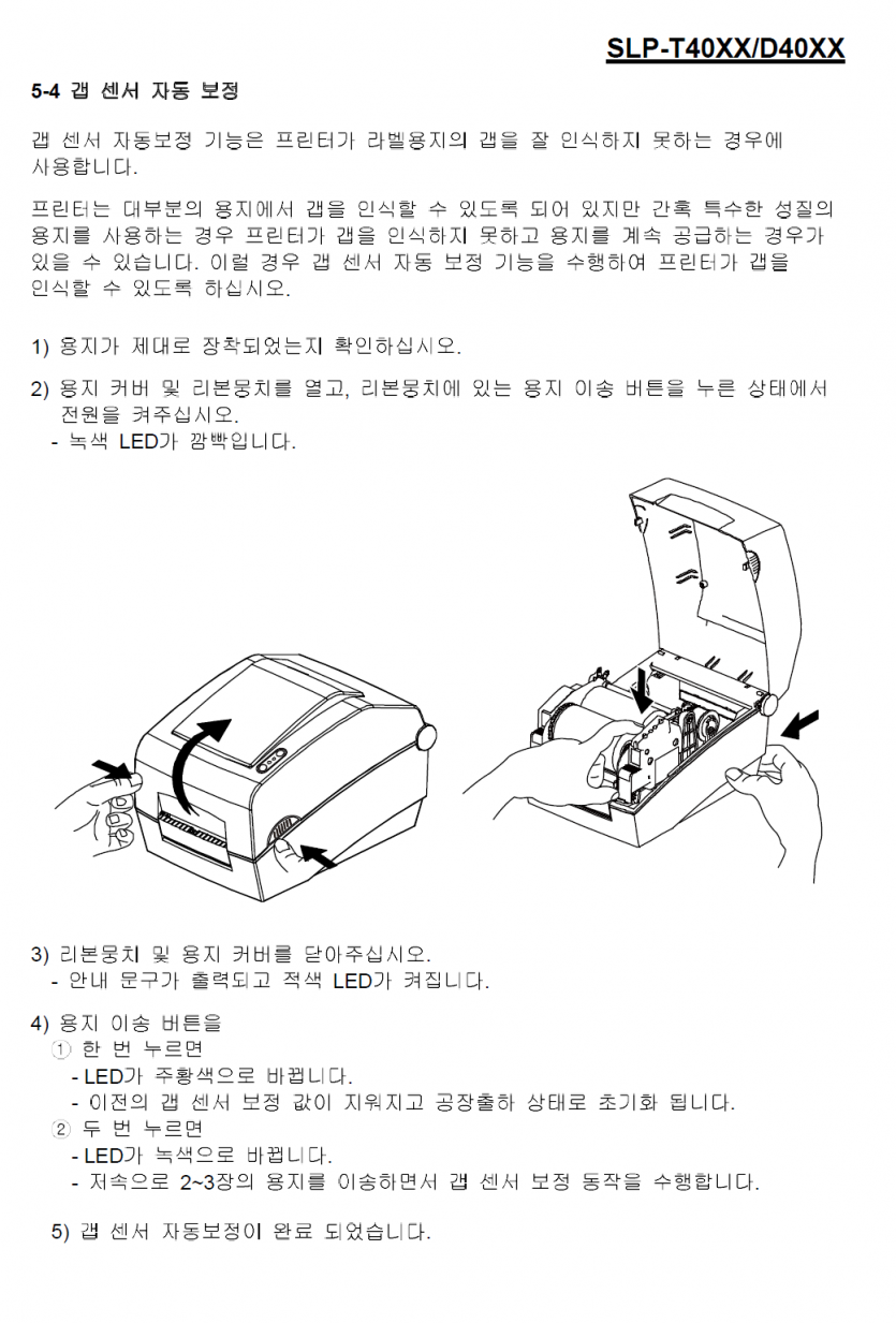 SLP-T400,T403,TX400,TX403 프린터소모품교환-갭센서보정
