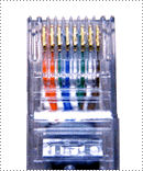 | 네트워크가 문제를 일으키는 경우 가장 빈번한것은 케이블입니다. 다음의 핀배치와 같이 RJ45Jack의 구리 커넥터가 작업자가 보았을때 정면으로 보일때 제일 왼쪽을 1번 핀이라고 하면 다음과 같습니다. (아래 그림 참조) | |
